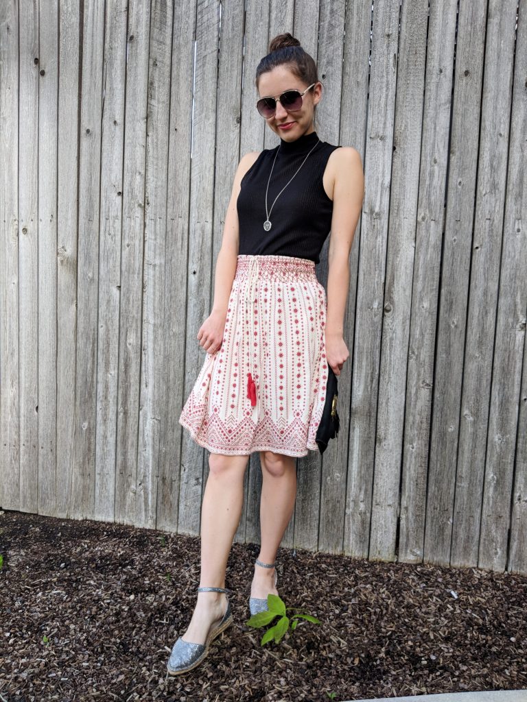 Remember how I styled this boho printed skirt as a halter-neck top last summer? I think it would make the cutest outfit for an outdoor concert! Nothing screams summer time like a little (or a lot) of shoulder showing. Check out my favorite sticky bra here to wear with all your sleeveless and strapless summer tops.