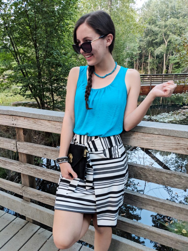I always love all the different fairs and festivals that happen in the summertime, such as lavender festivals, Art in the Park fairs, cherry festivals, etc. This bold turquoise and striped outfit is the perfect base look to deck out with the unique jewelry and accessories from craft fairs! Plus, I’m just a big skirt- and dress-wearer in the summer instead of shorts, which you’ll quickly notice from this outfit roundup.
