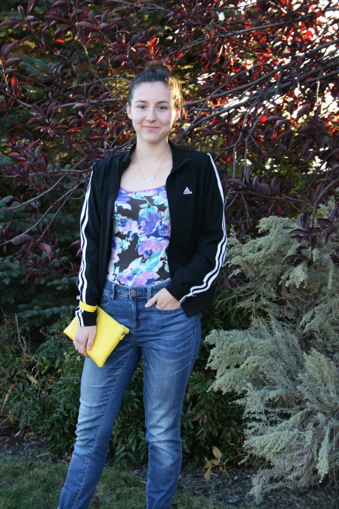 This outfit is absolutely atrocious. I can’t believe I ever thought this look was even remotely cute. In fact, this outfit makes me seriously question my sense of style. Am I actually stylish, or do I just like clothes? Because I do think there’s a difference. For one, these jeans don’t fit me at all; they have a saggy crotch and are caught somewhere in the unflattering middle between skinny jeans and a straight-leg fit. The yellow purse is a completely random pop of color. Also, tucking this floral tee into my lower-rise jeans is a great way to make me look like I have a belly when I don’t. And last—but certainly not least—this Addidas striped jacket over the top? Why??? If you want to see more of this ugly outfit, check out the whole post here.