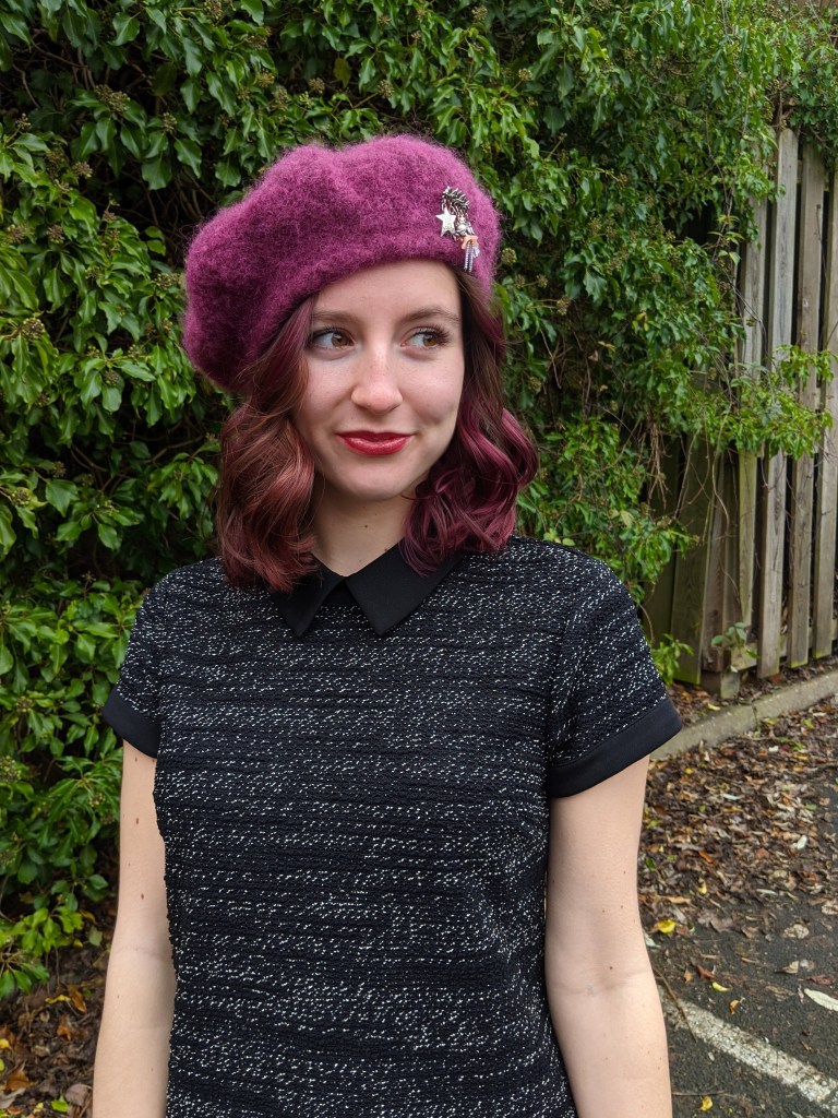 This is the newest way I have been styling my brooches and possibly my favorite! I love the sparkle and extra style that this dangly pin adds to my new felt beret. I also put a pin “cluster” on my green felted hat, seen in one of my OOTDs from this weekly recap.