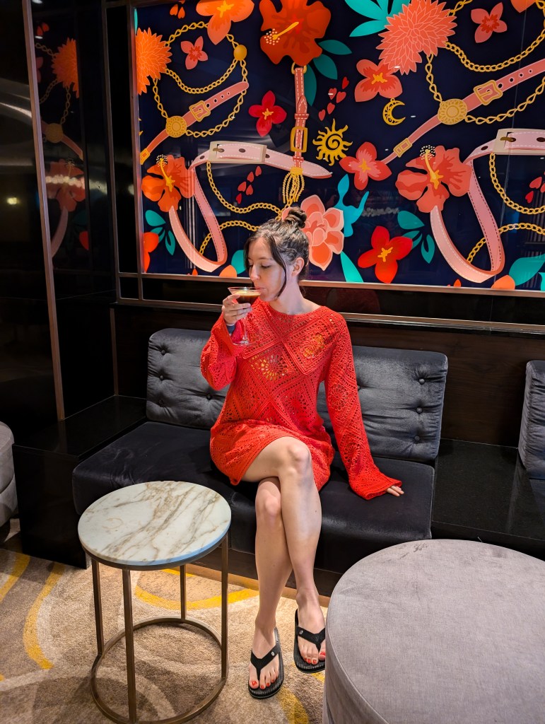 - Leave most of the heels at home. While there were plenty of women wearing heels aboard, I was just never in the mood and only ended up wearing heels once on elegant night. It would have saved a lot of room in my bag (not that I was pressed for space), and now I know to prioritize outfits with flatter shoes. Even though you’re in a confined space, I actually ended up doing a lot of walking on the cruise ship to get from place to place.